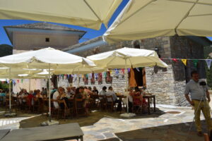 Τέλος παρετάθη δεῖπνο σὲ ὅλους ἀπὸ καλαβρυτινὲς λιχουδιὲς συνοδείᾳ τῆς ἀθάνατης δημοτικῆς μουσικῆς καὶ εὐπρεπῶν ἀσμάτων ἀπὸ τὸ ὀργανωμένο καὶ ἔμπειρο συγκρότημα τοῦ κ. Κων/νου Ζαφειρόπουλου (κλαρίνο), Ἀντωνίου Ζαφειροπούλου (κρουστά) καὶ τραγούδι ἀπὸ τὸν φημισμένον Νικόλαο Πολυζογόπουλο.