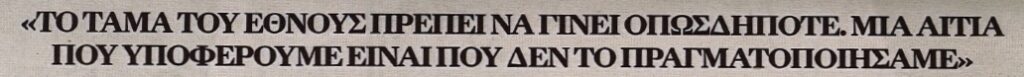 «ΤΟ ΤΑΜΑ ΤΟΥ ΕΘΝΟΥΣ ΠΡΕΠΕΙ ΝΑ ΓΙΝΕΙ ΟΠΩΣΔΗΠΟΤΕ.