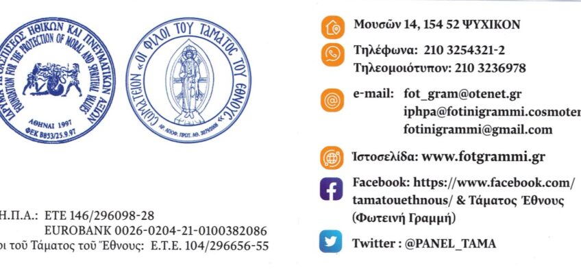 Παρακαλοῦμε ἐνημερώσατέ μας εἰς τὰ τηλέφωνα 2103254321-2 καὶ 6979975245, 6909290949