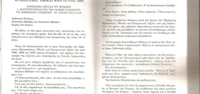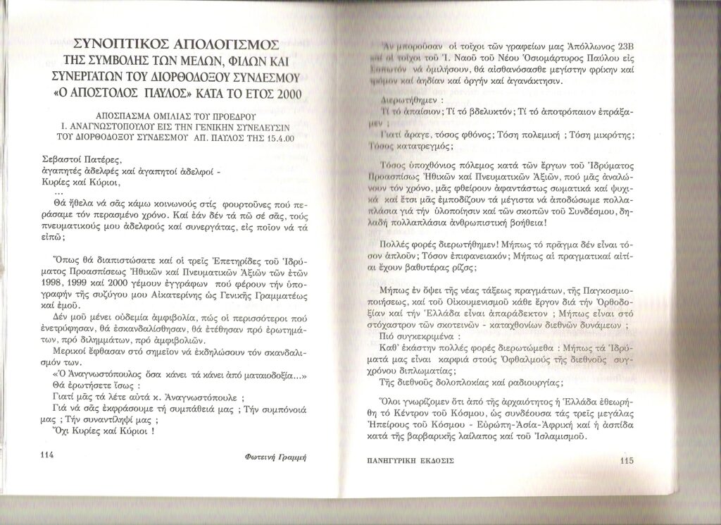 28 Ιαν 2001 ΦΩΤΕΙΝΗ ΓΡΑΜΜΗ 5 -ΔΙΟΡΘΟΔΟΞΟΣ ΣΥΝΔΕΣΜΟΣ Ο ΑΠΟΣΤΟΛΟΣ ΠΑΥΛΟΣ ΣΥΝΟΠΤΙΚΟΣ ΑΠΟΛΟΓΙΣΜΟΣ από Foteini Grammi | αναρτήθηκε σε: Ανθρωπιστικες βοήθειες, Άρθρα Περιοδικού "Φωτεινή Γραμμή", Διορθόδοξος σύνδεσμος "Απόστολος Παύλος" | 0