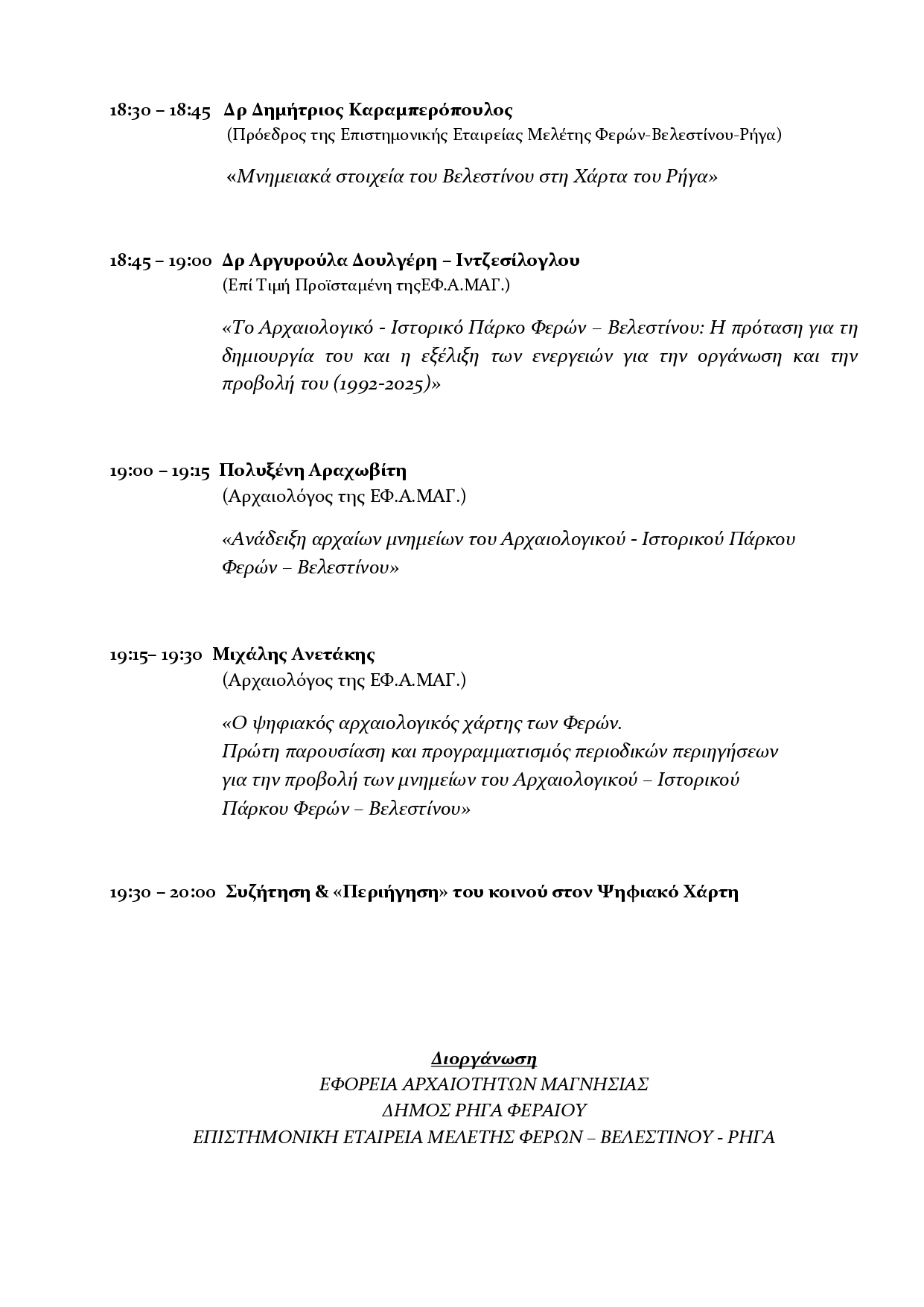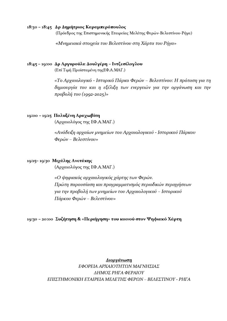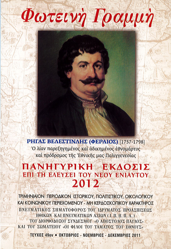 Παρακαλουθοῦμε μὲ θαυμασμὸν τὸν ἀγῶνα τοῦ ἀκαμάτου ἰατροῦ φίλου Δρ. Δημητρίου Καραμπερόπουλου, Προέδρου τῆς ‘’Ἐπιστημονικής Ἐταιρείας Μελέτης Φερών – Βελεστίνου – Ρήγα’’ διὰ τὰ Ἐθνικὰ θέματα, ἐπικεντρώνοντος τὶς ἔρευνές του ἰδιαιτέρως διὰ τὸν μεγάλο Ἡρωα μας ΡΗΓΑ ΦΕΡΑΙΟ ΒΕΛΕΣΤΙΝΛΗ.