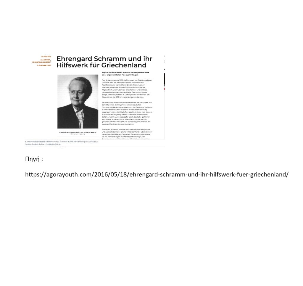 Μία ἀνεγνωρισμένη πολὺ μεγάλη Φιλέλλην Γερμανίδα ἦταν καὶ ἡ Ἐπιστήμων καὶ Πολιτικὸς Ehrengard Schramm von Thander, ὅπως περιγράφεται καὶ εἰς τὸ συνημμένο γερμανικὸ Ἄρθρο μὲ τίτλο : Ehrengard-Schramm-und-ihr-Hilfswerk-fuer-Griechenland («ἡ Ehrengard Schramm von Thander καὶ ἡ Βοήθειά της διὰ τὴν Ἑλλάδα»).