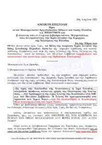 (ΝΕΑ ΠΑΡΕΜΒΑΣΗ ΕΠΙΣΤΟΛΗ ΠΡΟΣ ΤΟΝ ΑΡΧΙΕΠΙΣΚΟΠΟ ΙΕΡΩΝΥΜΟ ΤΟΥ ΜΟΝΑΧΟΥ ΔΑΜΑΣΚΗΝΟΥ ΓΡΗΓΟΡΙΑΤΗ 14-4-2021.)