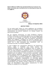 4) Ἐπίσης ὁ Ἱερὸς Σύνδεσμος Κληρικῶν Ἑλλάδος (ΙΣΚΕ) μὲ τὸ ἀπὸ 21.04.2021 Δελτίο Τύπου του (http://iersynklellados.blogspot.com/2021/04/blog-post.html#more ΣΥΝΗΜΜΕΝΟ 4) ρητῶς ἐκφράζει τὴν ἀντίθεσίν του καὶ καταγανάκτησὶν του εἰς τὴν πραγματοποίσιν τῆς τελετῆς καὶ τῆς Θείας Λειτουργίας τῆς Ἀναστάσεως, ὄχι τὴν καθιερωμένη ὥρα 00:00 τοῦ Μεγάλου Σαββάτου ἀλλὰ ἐνωρίτερα.