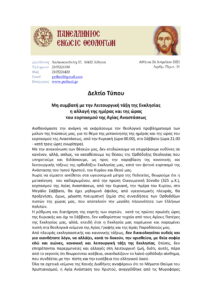 5) Ἡ Πανελλήνια Ἕνωσις Θεολόγων (ΠΕΘ) μὲ τὸ ἀπὸ 24.4.21 Δελτίο Τύπου (ΣΥΝΗΜΜΕΝΟ 5) ὁμοίως καταδικάζει τηὴν ἀλλαγὴ τῆς ἡμέρας καὶ τῆς ὥρας τοῦ ἑορτασμοῦ τῆς Ἁγίας Ἀναστάσεως.