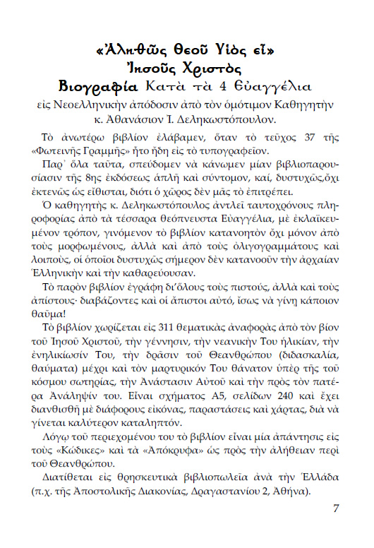 18 Ιαν 2009 ΦΩΤΕΙΝΗ ΓΡΑΜΜΗ – ΑΛΗΘΩΣ ΘΕΟΥ ΥΙΟΣ ΕΙ από Foteini Grammi | αναρτήθηκε σε: Άρθρα Περιοδικού "Φωτεινή Γραμμή", Βιβλιοπαρουσίαση | 0