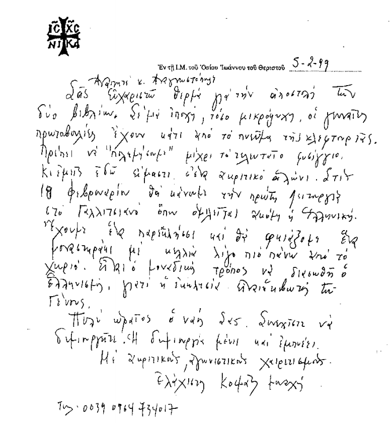 26 Νοέ 2025 ΦΩΤΕΙΝΗ ΓΡΑΜΜΗ ΤΕΥΧΟΣ 2-ΤΟ ΙΔΡΥΜΑ ΣΗΜΑΤΟΦΟΡΟΣ ΤΩΝ ΠΝΕΥΜΤΙΚΩΝ ΑΞΙΩΝ ΣΕ ΟΛΟΝ ΤΟΝ ΚΟΣΜΟΝ-ΠΑΤΗΡ ΚΟΣΜΑΣ ΤΗΣ ΙΕΡΑΣ ΜΟΝΗΣ ΟΣΙΟΥ ΙΩΑΝΝΟΥ ΤΟΥ ΘΕΡΙΣΤΟΥ/ΙΤΑΛΙΑ-ΜΑΡ.2000 από Foteini Grammi | αναρτήθηκε σε: Άρθρα Περιοδικού "Φωτεινή Γραμμή" | 0 Ἔφ᾽ ὅσον ζοῦν εἰς τὰς ἡμέρας μας μοναχοὶ σὰν τόν Πατέρα Κοσμᾶ τῆς Ἱερᾶς Μονῆς Ὁσίου Ἰὠάννου τοῦ Θεριστοῦ S.M. di SAN GIOVANNI THERIST’IS 89040 BIVONGGI (RC) – ITALIA φαίνεται ὅτι θ’ ἀργήση ἤ Δευτέρα Παρουσία.