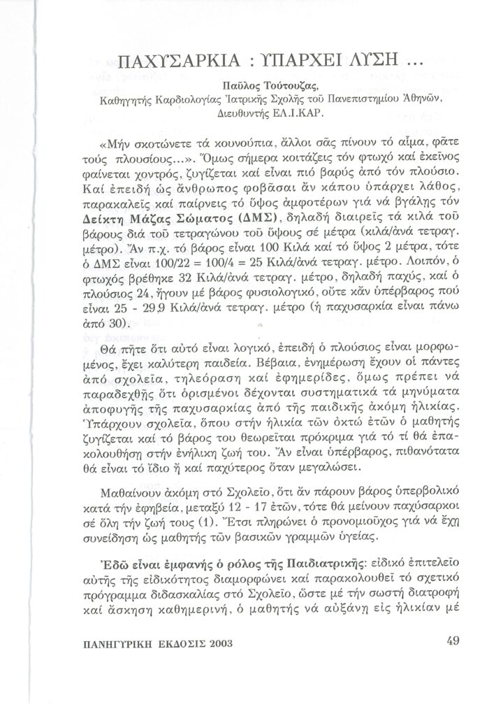 13 Ιαν 2003 ΦΩΤΕΙΝΗ ΓΡΑΜΜΗ 13 – ΠΑΧΥΣΑΡΚΙΑ από Foteini Grammi | αναρτήθηκε σε: Άρθρα Περιοδικού "Φωτεινή Γραμμή", Υγεία | 0