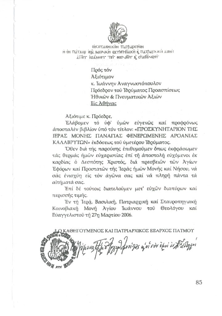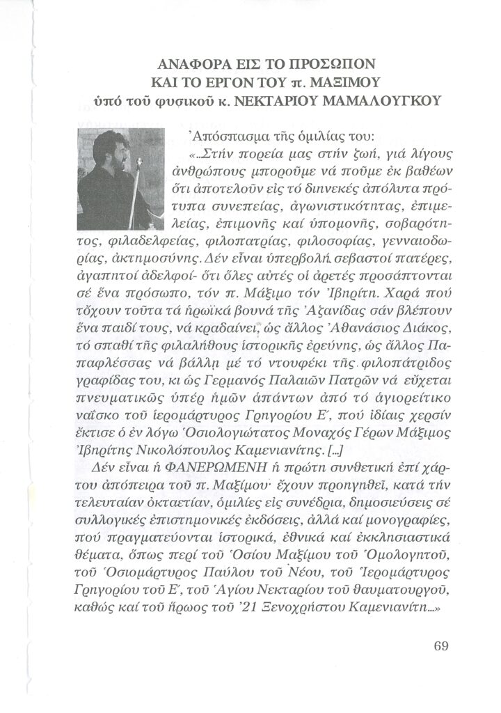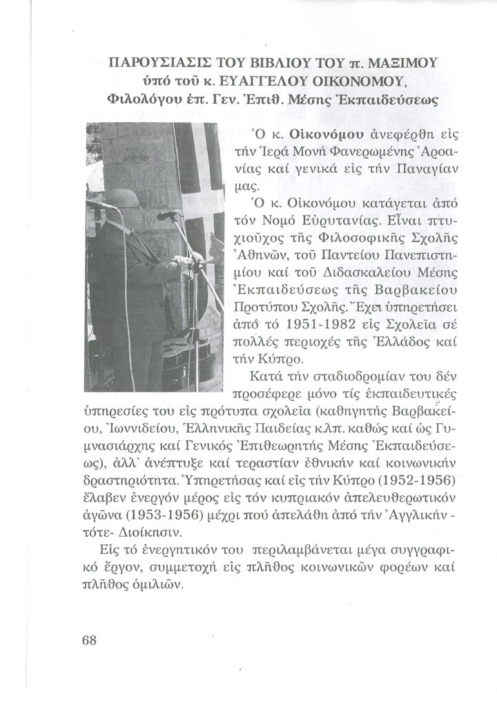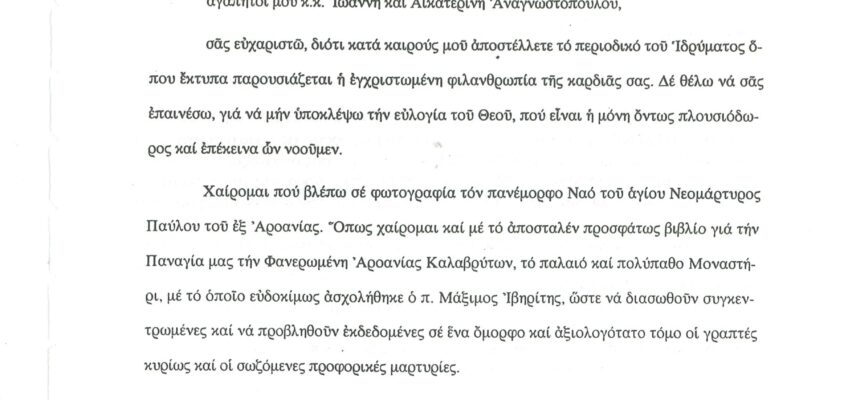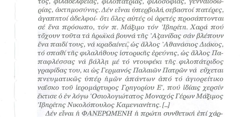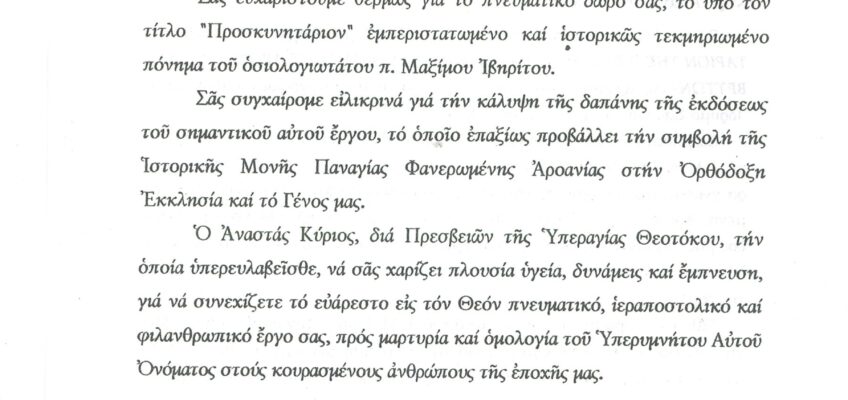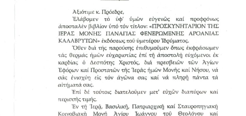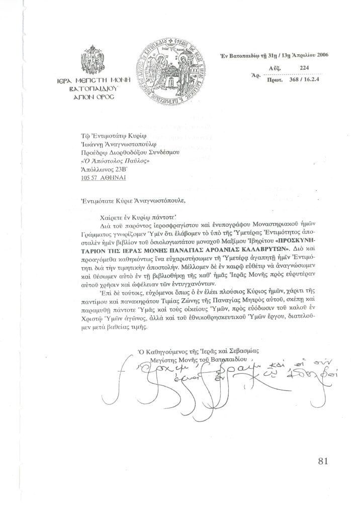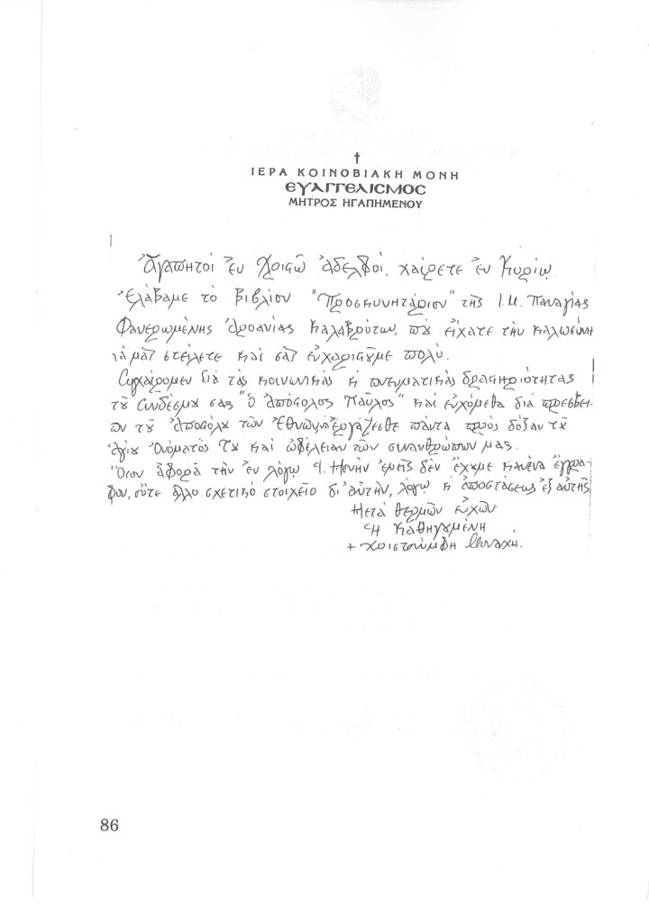 ΦΩΤΕΙΝΗ ΓΡΑΜΜΗ 29 -ΠΑΡΟΥΣΙΑΣΗ ΠΟΝΗΜΑΤΟΣ π. ΜΑΞΙΜΟΥ ΙΒΗΡΙΤΟΥ “ΠΡΟΣΚΥΝΗΤΑΡΙΟΝ Ι.Μ. ΦΑΝΕΡΩΜΕΝΗΣ ΑΡΟΑΝΙΑΣ ΚΑΛΑΒΡΥΤΩΝ” -ΕΞΕΛΙΞΕΙΣ ΣΤΗΝ ΑΝΑΣΤΥΛΩΣΗ ΤΗΣ ΜΟΝΗΣ