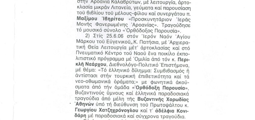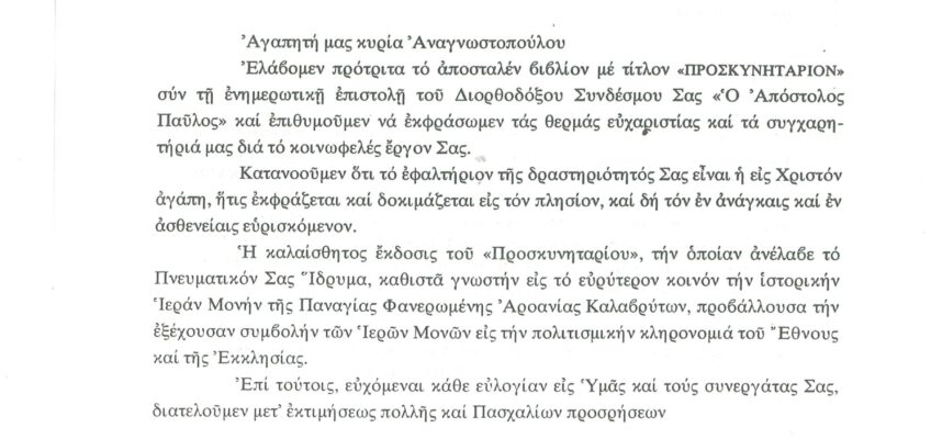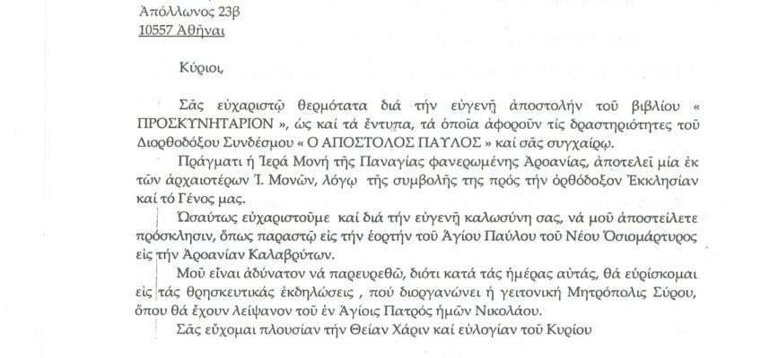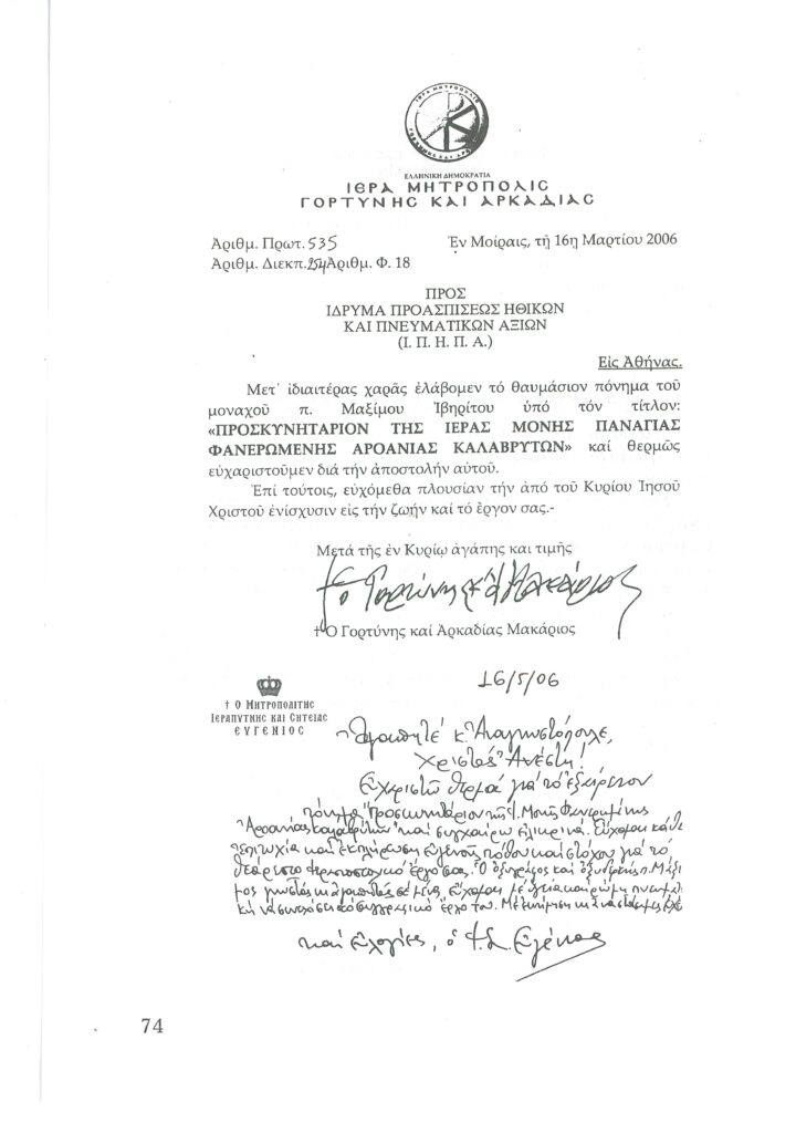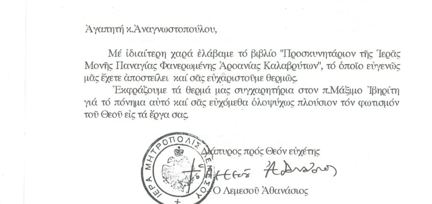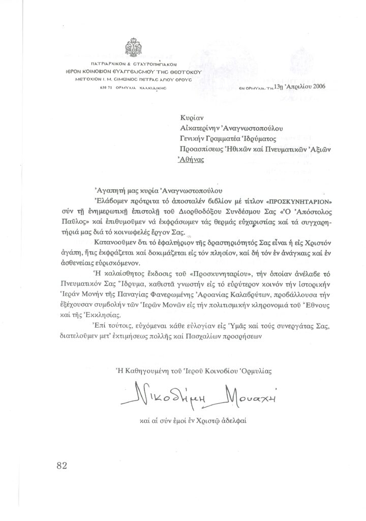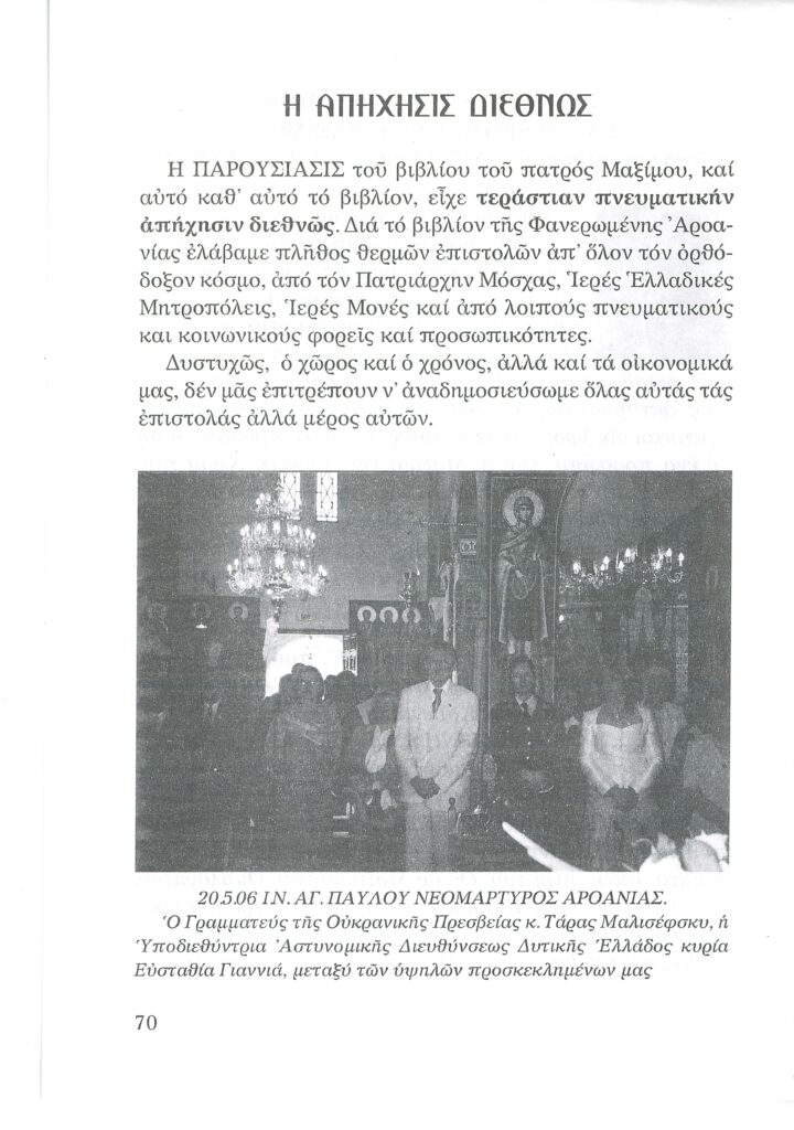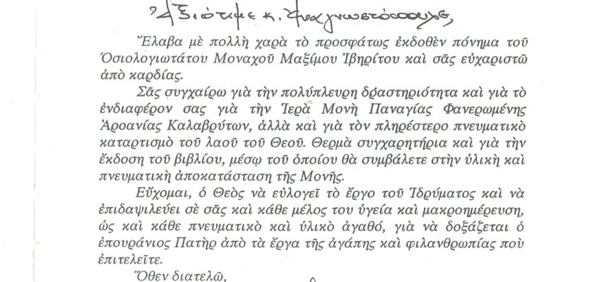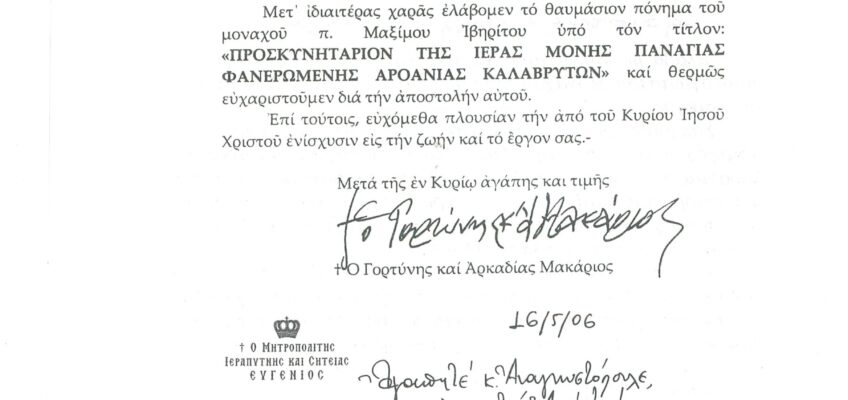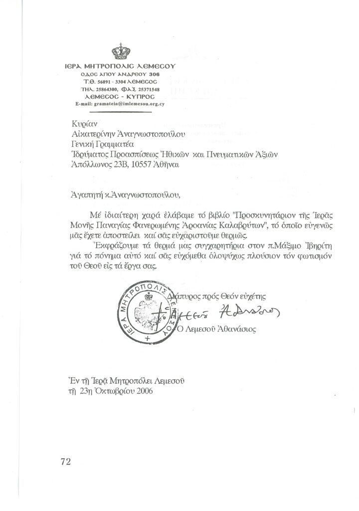 ΦΩΤΕΙΝΗ ΓΡΑΜΜΗ 29 -ΠΑΡΟΥΣΙΑΣΗ ΠΟΝΗΜΑΤΟΣ π. ΜΑΞΙΜΟΥ ΙΒΗΡΙΤΟΥ “ΠΡΟΣΚΥΝΗΤΑΡΙΟΝ Ι.Μ. ΦΑΝΕΡΩΜΕΝΗΣ ΑΡΟΑΝΙΑΣ ΚΑΛΑΒΡΥΤΩΝ” -ΕΞΕΛΙΞΕΙΣ ΣΤΗΝ ΑΝΑΣΤΥΛΩΣΗ ΤΗΣ ΜΟΝΗΣ
