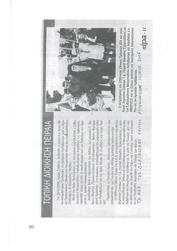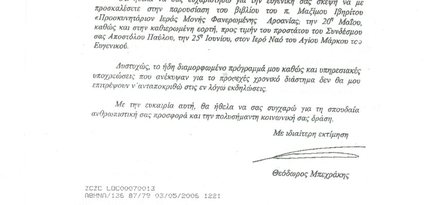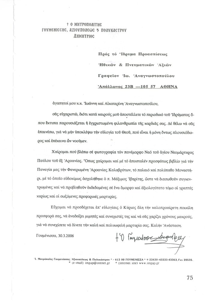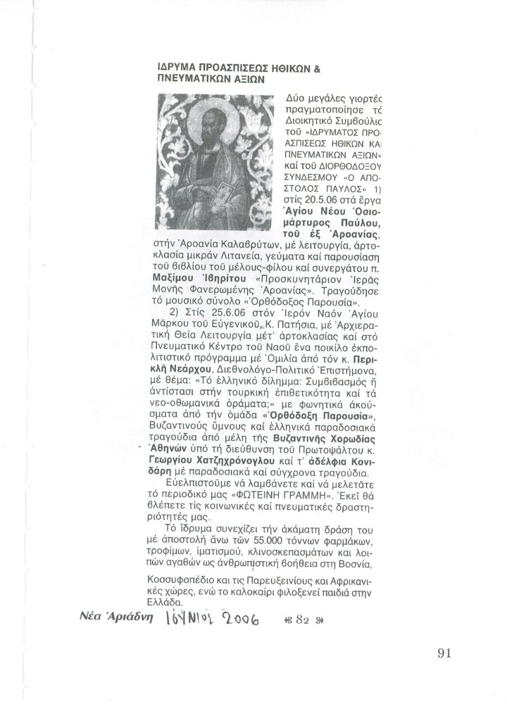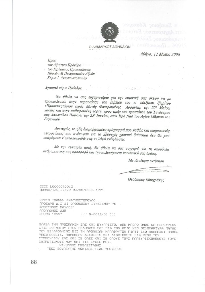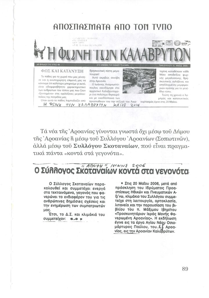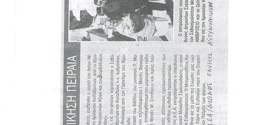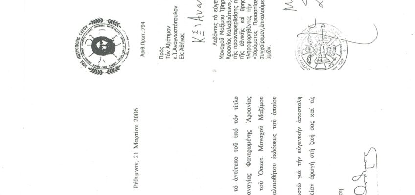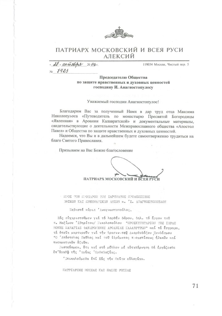 ΦΩΤΕΙΝΗ ΓΡΑΜΜΗ 29 -ΠΑΡΟΥΣΙΑΣΗ ΠΟΝΗΜΑΤΟΣ π. ΜΑΞΙΜΟΥ ΙΒΗΡΙΤΟΥ “ΠΡΟΣΚΥΝΗΤΑΡΙΟΝ Ι.Μ. ΦΑΝΕΡΩΜΕΝΗΣ ΑΡΟΑΝΙΑΣ ΚΑΛΑΒΡΥΤΩΝ” -ΕΞΕΛΙΞΕΙΣ ΣΤΗΝ ΑΝΑΣΤΥΛΩΣΗ ΤΗΣ ΜΟΝΗΣ