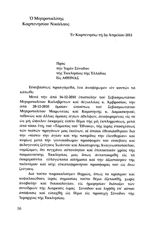 Ας ελπίσουμε, λοιπόν, ότι η επιστολή του Σεβασμιότατου Σπάρτης θα τύχει της ανάλογης ανταπόκρισης εκ μέρους του Μακαριότατου.