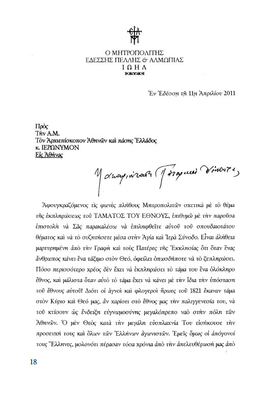 ΠΡΟΣ ΤΟΝ ΑΡΧΙΕΠΙΣΚΟΠΟ ΙΕΡΩΝΥΜΟ
