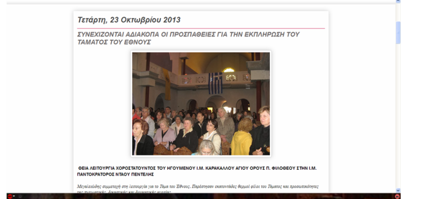 Μᾶς ἔστειλεν ἐπίσης ἕνα νέο ἔγγραφον ἡ Δ.Ι.Σ. – ἀντίγραφον πρὸς τὸν Σεβ. Μητροπ. Κυθήρων κ. Σεραφείμ, ὅτι τὴν 14ην Μαΐου 2013 ἀπεφάνθη νὰ πραγματοποιηθῇ τὸ Τάμα τοῦ Ἔθνους (ὅμως εἰς τὸ δελτίον τῆς Δ.Ι.Σ. 14.5.2013 οὐδεμία ἀπόφασις διὰ τὸ Τάμα τοῦ Ἔθνους ἀναφέρεται).
