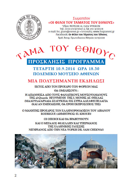 30 Σεπ 2014 ΦΩΤΕΙΝΗ ΓΡΑΜΜΗ 60-Η ΕΠΙΚΕΙΜΕΝΗ ΕΚΔΗΛΩΣΗ ΤΟΥ ΣΩΜΑΤΕΙΟΥ ΤΟ ΤΑΜΑ ΤΟΥ ΕΘΝΟΥΣ ΣΤΟ ΠΟΛΕΜΙΚΟ ΜΟΥΣΕΙΟ 10-9-2014 (ΠΡΟΓΡΑΜΜΑ-ΠΑΡΑΤΗΡΗΣΕΙΣ) από Foteini Grammi | αναρτήθηκε σε: Άρθρα Περιοδικού "Φωτεινή Γραμμή", Εκδηλώσεις, Το Τάμα του Έθνους | 0