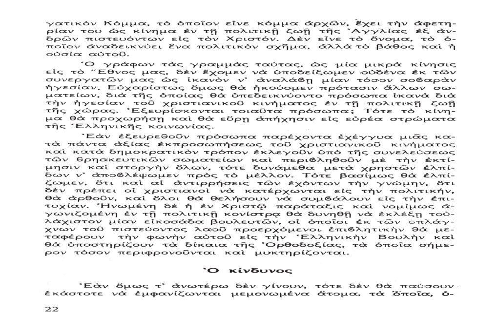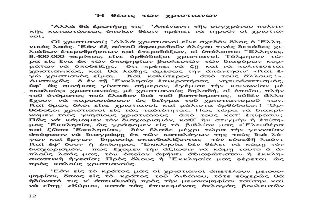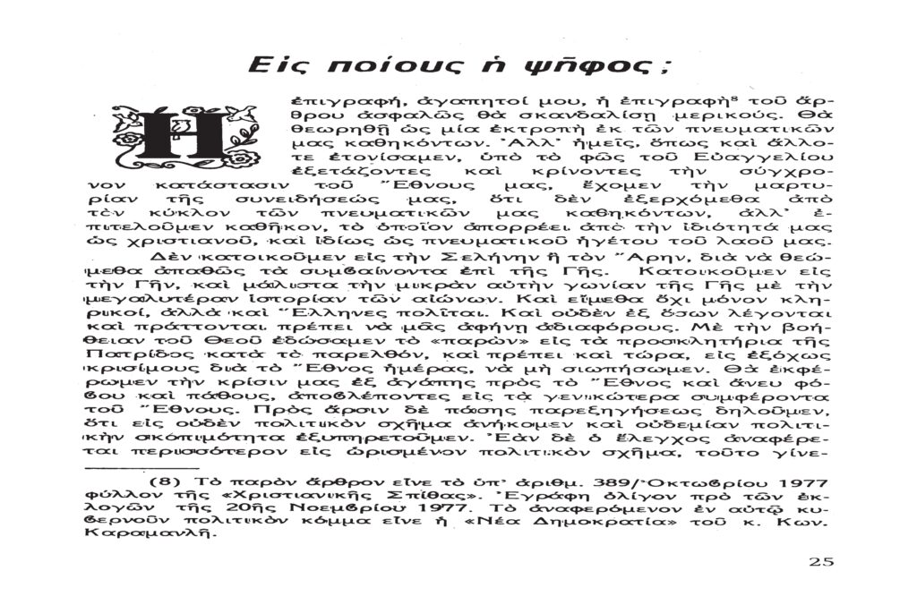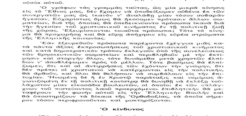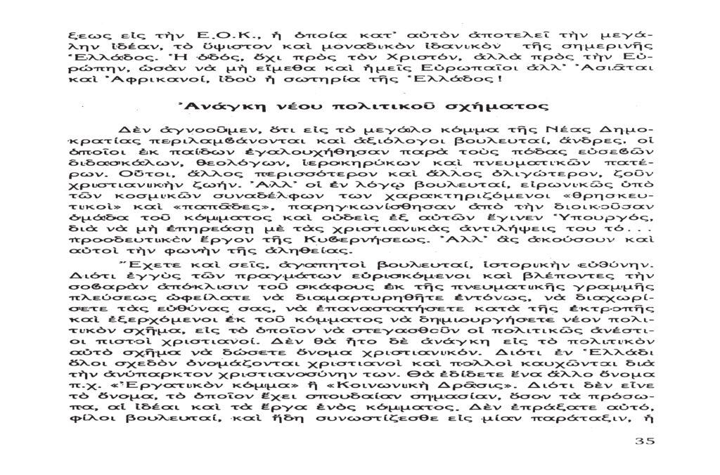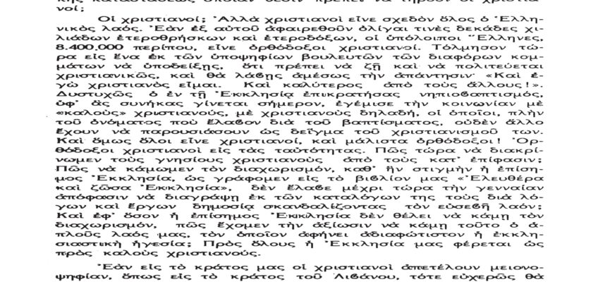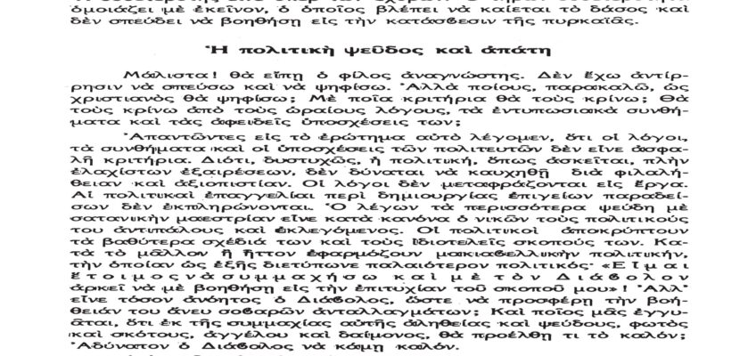 Τὸ παρὸν λίαν σπουδαῖον ἀπόσπασμα τὸ δημοσιεύομεν λόγῳ τοῦ λίαν ἐπικαίρου θέματος, καθὼς καὶ διὰ τὴν ἐπανάληψιν τῶν ἰδεωδῶν ὑψίστης ἀξίας τοῦ εἰς πάντα διαπρέψαντος Ἀειμνήστου Θρυλικοῦ Γέροντος πρώην Μητροπολίτου Φλωρίνης Αὐγουστίνου Καντιώτου, διὰ νὰ συγκρίνουν καὶ ἐνθυμοῦνται οἱ παλαιοὶ καὶ νὰ μαθαίνουν οἱ νέοι καὶ αἱ νέαι τῆς Ἑλλάδος!!!…
