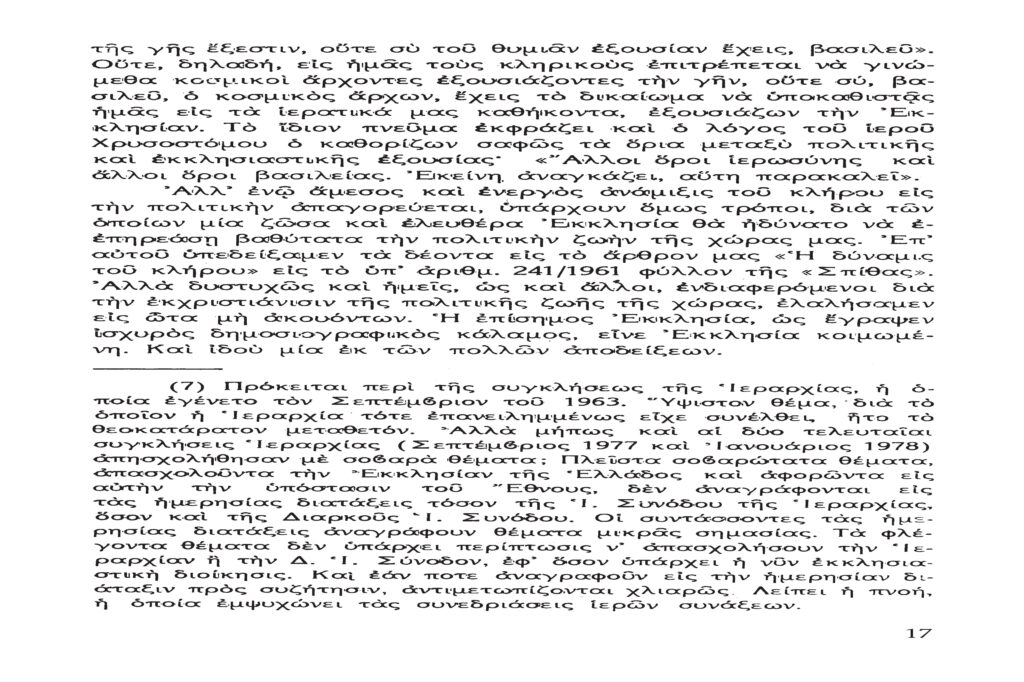 Σκεφθεῖτε ἄν εἴχαμε τὴν τύχην νὰ ἦτο Ἀρχιεπίσκοπος Ἀθηνῶν καὶ πάσης Ἑλλάδος ἢ Πατριάρχης. Θὰ ἦτο τελείως διαφορετικὴ ἡ Ἑλληνικὴ Κοινωνία, ἡ Ἑλληνικὴ Πολιτεία καὶ θὰ ἔλαμπεν ἡ Ὀρθοδοξία καὶ θὰ ἐφηρμόζοντο οἱ στίχοι τοῦ εὐλαβοῦς καὶ εὐσυνειδήτου Χριστιανοῦ ποιητοῦ Γ. Βερίτη: