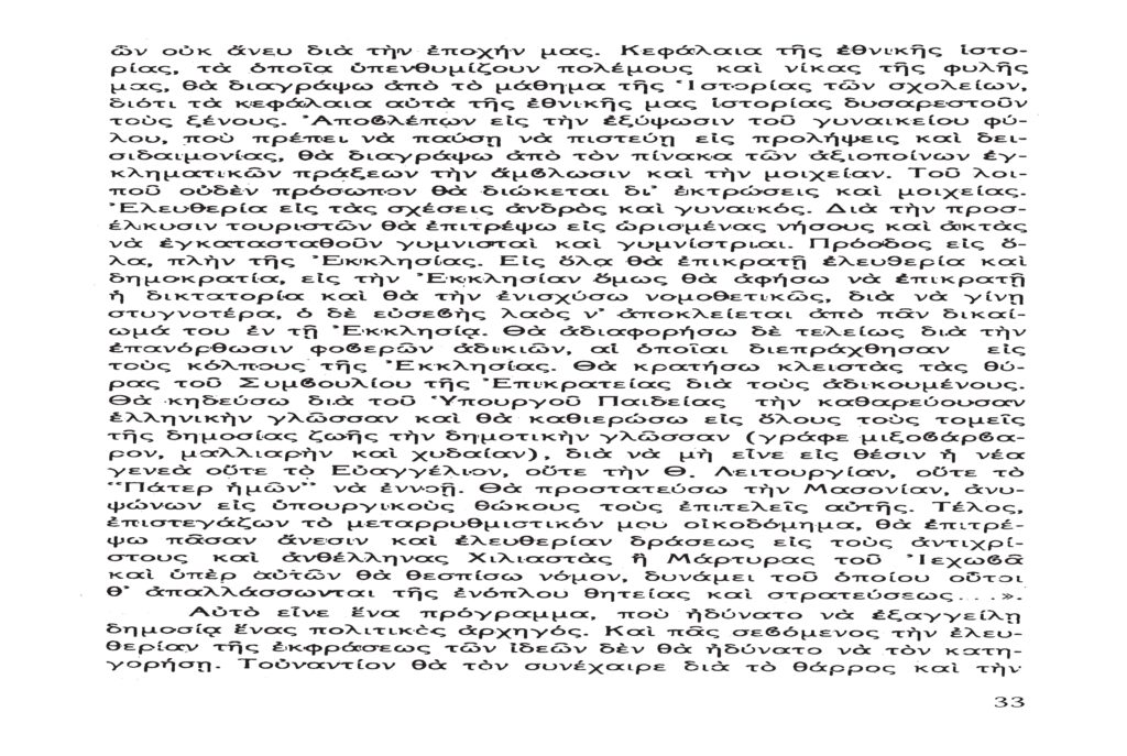 «ὅπως ἔδωσες θὰ δώσῃς, θὰ ζητήσουν ὡς ζητεῖς, θὰ γενῇς καὶ πάλι φώτων καὶ πολιτισμοῦ κοιτίς».