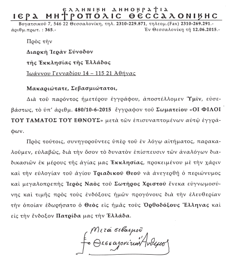 Ταπεινὰ θέλουμε νὰ ἱκετεύσουμε τὴν Ἱερὰ Σύνοδο καὶ τὸν Μακαριώτατο Ἀρχιεπίσκοπο κ.κ. Ἱερώνυμο νὰ ἐποπτεύσουν τὴν ὅλη διαδικασία καὶ νὰ πράξουν, τὸ συντομότερο, ὅ,τι χρειάζεται, γιὰ νὰ ἀρχίσῃ νὰ οἰκοδομεῖται αὐτὸ τὸ ἀριστούργημα, τὸ ὁποῖο θὰ δώσει τόση χαρὰ στὸν οὐρανό, ὅση καὶ στὴν γῆ καὶ κυρίως σὲ ἐμᾶς τοὺς νέους, τὴν νέαγενιά, ἡ ὁποία ἔχει Ἀνάγκη ἀπὸ ἕναν τέτοιο Ναό, ὁ ὁποῖος θὰ τῆς θυμίζει ἔνδοξα ἡρωικὰ χρόνια καὶ θὰ τὴν κάνει νὰ μὴ ξεχνᾶ ΠΟΤΕ ὅτι ἡ ἴδια ἀποτελεῖ συνέχεια ἑνὸς ἡρωικοῦ Θεοσεβάστου λαοῦ.