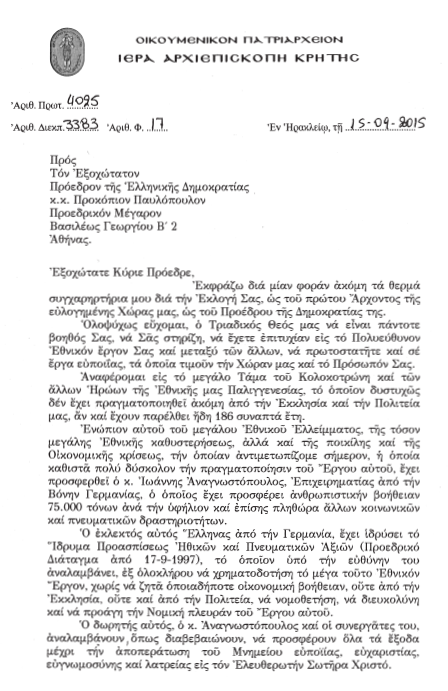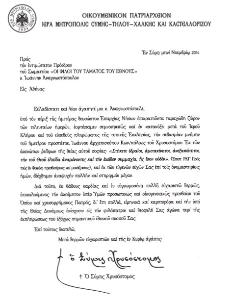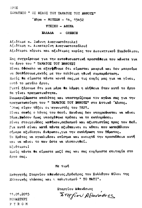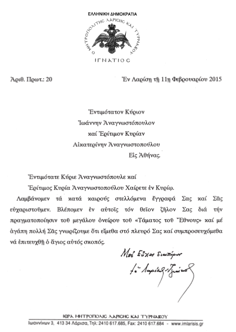 Ἀγαπητὲ κ. Ἀναγνωστόπουλε σὺν τῇ ἐριτίμῳ συζύγῳ κ. Αἰκατερίνῃ, Χαίρετε ! Νοέμβριος 2015