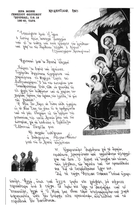 Ἐλπίζω νὰ σᾶς ἀρέσει τὸ συνημμένο. Εἴχαμε τὸ πανηγύρι τὸ Σαββατοκύριακο καὶ τὰ ἔβαλα γιὰ διανομή.