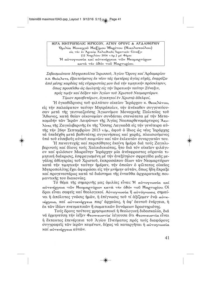 23 Δεκ 2016 ΦΩΤΕΙΝΗ ΓΡΑΜΜΗ 69-Η ΑΥΤΟΓΝΩΣΙΑ ΚΑΙ Η ΑΥΤΕΝΕΡΓΕΙΑ ΤΩΝ ΝΕΟΜΑΡΤΥΡΩΝ ΚΑΤΑ ΤΗΝ ΟΔΟ ΤΟΥ ΜΑΡΤΥΡΙΟΥ από Foteini Grammi | αναρτήθηκε σε: Άρθρα Περιοδικού "Φωτεινή Γραμμή", Θρησκευτικά, Ιστορικά, Ψυχωφελή | 0