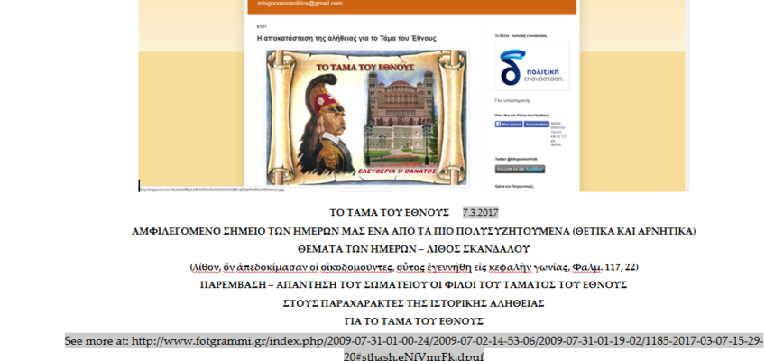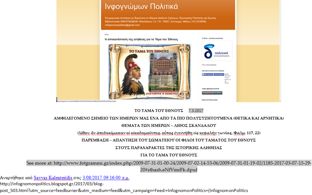 4. Περισσότερα καὶ γλαφυρότερα εἰς τὸ κατωτέρω ἄρθρον τοῦ εὐσυνειδήτου καὶ φιλοτίμου δημοσιογράφου Παναγιώτη Σαββίδη εἰς τὴν ἔγκυρον καὶ ἔγκριτον ἠλεκτρονικὴν ἔκδοσιν τῆς 5.1.2017 τῆς σοβαρᾶς ἐφημερίδος ΠΡΩΤΟ ΘΕΜΑ
