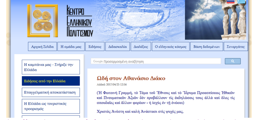 Κατωτέρω ἕν ἀπὸ τὰ πολλὰ παραδείγματα εἰς τὸ Κέντρον Ἑλληνικοῦ Πολιτισμοῦ εἰς τὴν Μόσχαν.