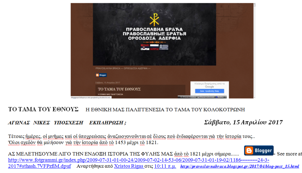 διὰ τὸ Τάμα τοῦ Ἔθνους» * 3.4.2017