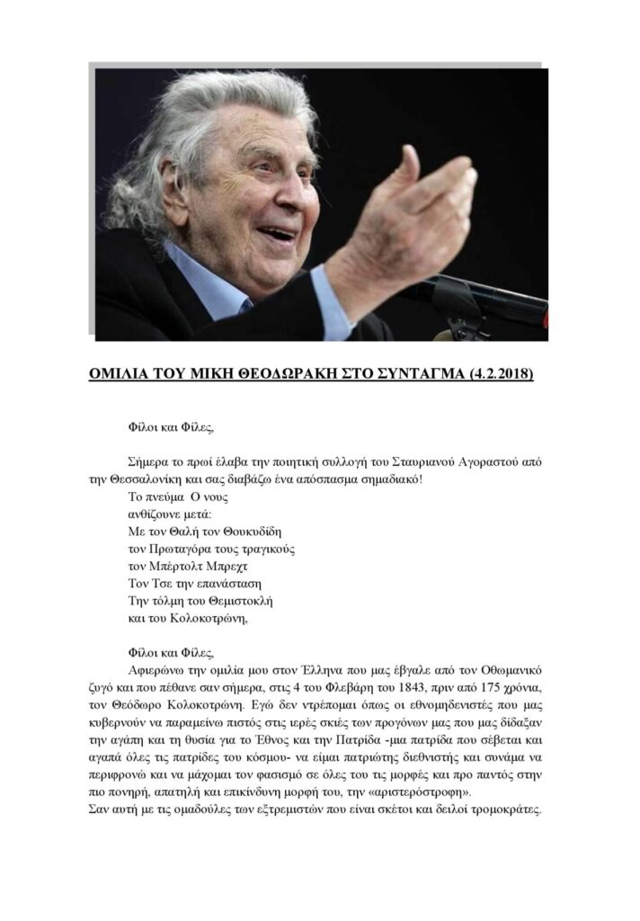 Ὅσοι δὲν ἠδυνήθησαν νὰ ἀκούσουν αὐτά, τὰ ὁποῖα εἰπώθησαν ὑπὸ τοῦ Προέδρου τοῦ Τάματος τοῦ Ἔθνους εἰς τὸ μεγαλειῶδες συλλαλητήριον τοῦ Συντάγματος τὴν 4.2.2018, ἠμποροῦν νὰ ἰδοῦν εἰς τὸ διαδίκτυον, εἰς τὸν σύνδεσμον:https://www.youtube.com/watch?v=y4MAEuHNciAκt τὸ συντομώτατον video τῶν δύο (2) λεπτῶν καὶ νὰ τὸ ἀναμεταδώσουν εἰς δεκάδας καὶ ἑκατοντάδας χιλιάδας.