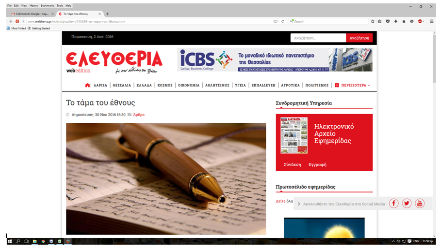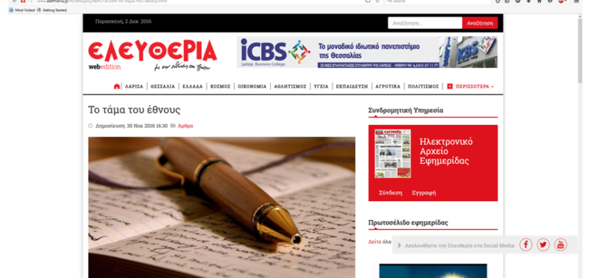τὴν 3ην Ὀκτωβρίου 2016 μὲ τὸ ἄρθρον