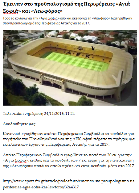 9. Πρέπει νὰ μᾶς παραχωρηθῇ μία περίοπτος καὶ δεσπόζουσα θέσις, ὅπως τὸ πανάκριβο «φιλέτο» τοῦ παλαιοῦ Ἱπποδρομίου στὸ Ἵδρυμα «Νιάρχος» καὶ μέρος τοῦ Ἄλσους Νέας Φιλαδελφείας στὸ γήπεδον τῆς ΑΕΚ.