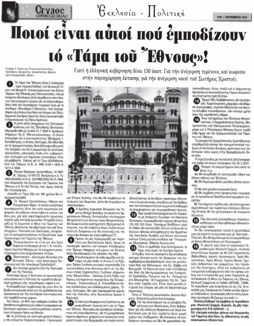 Γιατί όλοι αυτοί, ενώ με ευκολία εγκρίνουν νομοθετικά και χρηματοδοτούν ανέγερση «τεμένους», δεν υλοποιούν την απόφαση για το «τάμα»;… Όταν μάλιστα δεν τους ζητείται καμία οικονομική συνδρομή;! Μήπως συμβαίνει κάτι άλλο; Εάν αυτό «το κάτι άλλο» είναι το «μυστικό» της Πολιτείας, η Εκκλησία γιατί δεν μιλάει;