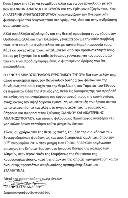 κάνει μίαν ἐμπεριστατωμένην καὶ ἀντικειμενικὴν ἀναφοράν, τὴν ὁποίαν παραθέτομε κατωτέρω.