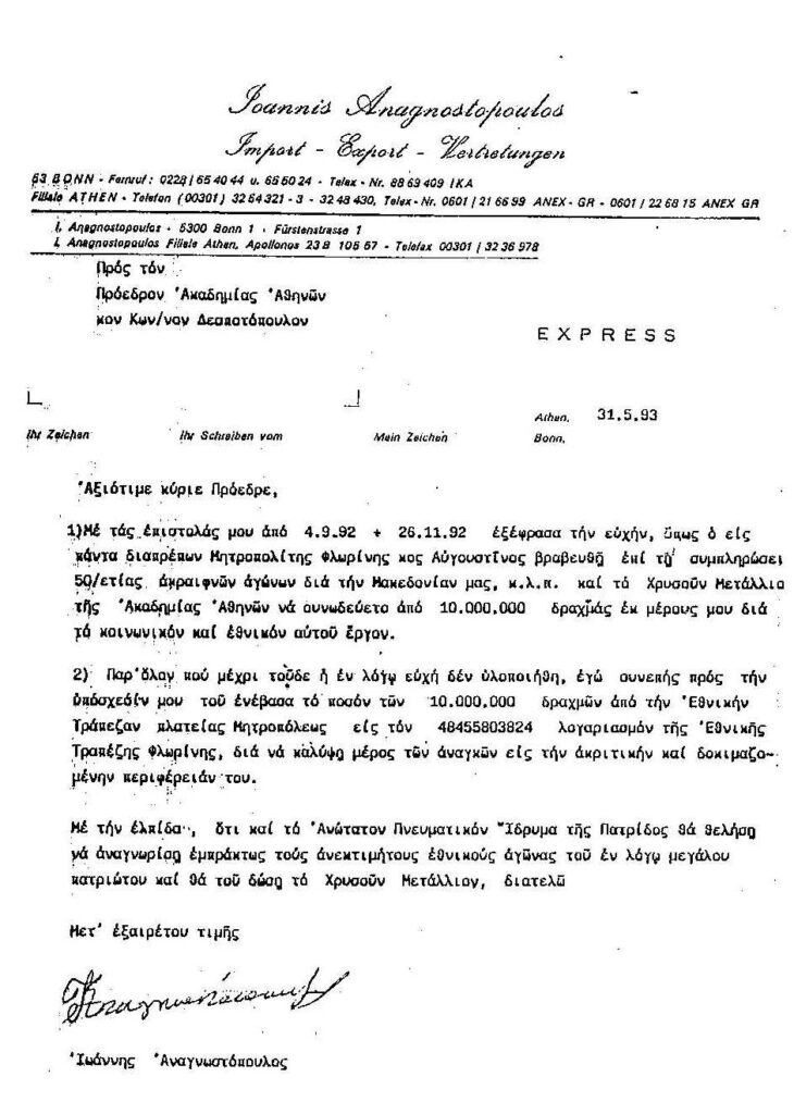 ΕΠΙΣΤΟΛΗ ΠΡΟΣ ΑΚΑΔΗΜΙΑ 1993